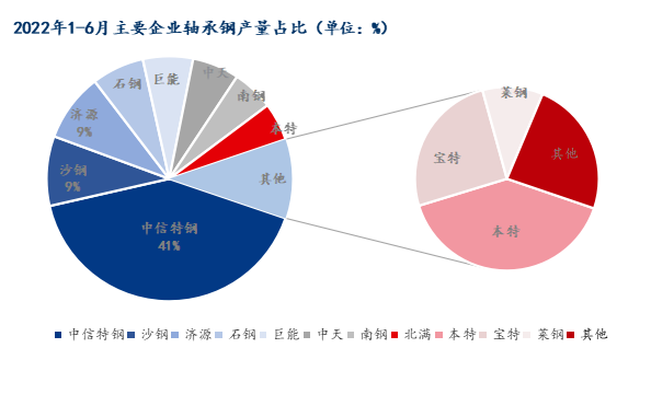 图2:2022年1-6月主要企业轴承钢产量占总产量比重